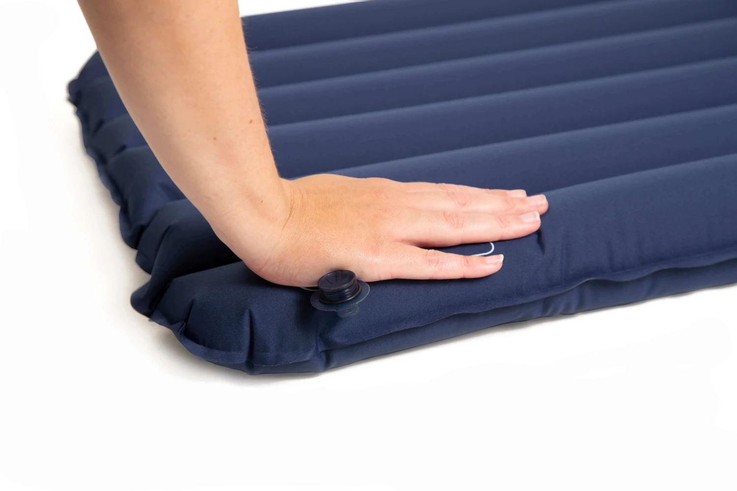 Met deze Exped Versa 4R slaapmat word je uitgerust wakker op reis. De mat bestaat uit verticale banen, waarvan de buitenste twee iets hoger zijn dan de rest. Hierdoor rol je ’s nachts niet van je slaapmat af. Het opblazen van de mat kan niet eenvoudiger. De slaapmat is namelijk voorzien van een handpomp. Je pompt een paar keer met je hand op het ventiel, en de mat blaast zichzelf op. Dit is niet alleen handig, maar zorgt er ook voor dat er geen vocht in je slaapmat komt. De mat is voorzien van twee ventielen: één voor het opblazen en één voor het laten leeglopen van je slaapmat. Het opblaasventiel is voorzien van een terugslagklepje. Hierdoor ontsnapt de lucht niet tijdens het opblazen. De ventielen zijn plat, zodat je je grondzeil niet beschadigt. De mat heeft een R-waarde van 3.7. Hiermee is hij geschikt voor alle seizoenen.
