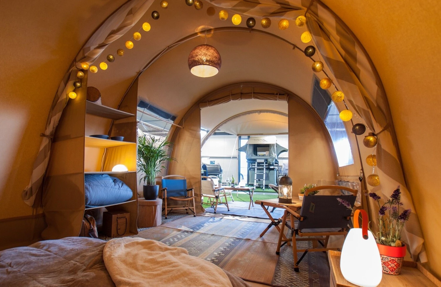 Hou je van een lichte en luchtige tent? De grote ramen aan beide zijden en de talrijke ventilatiepunten zorgen voor voldoende daglicht en frisse lucht. En voor de organisatiehelden onder ons: de zijwanden zijn zo ontworpen dat je eenvoudig allerlei opbergsystemen kunt bevestigen, inclusief een stijlvolle kastwand aan beide kanten voor al je kampeerspullen.