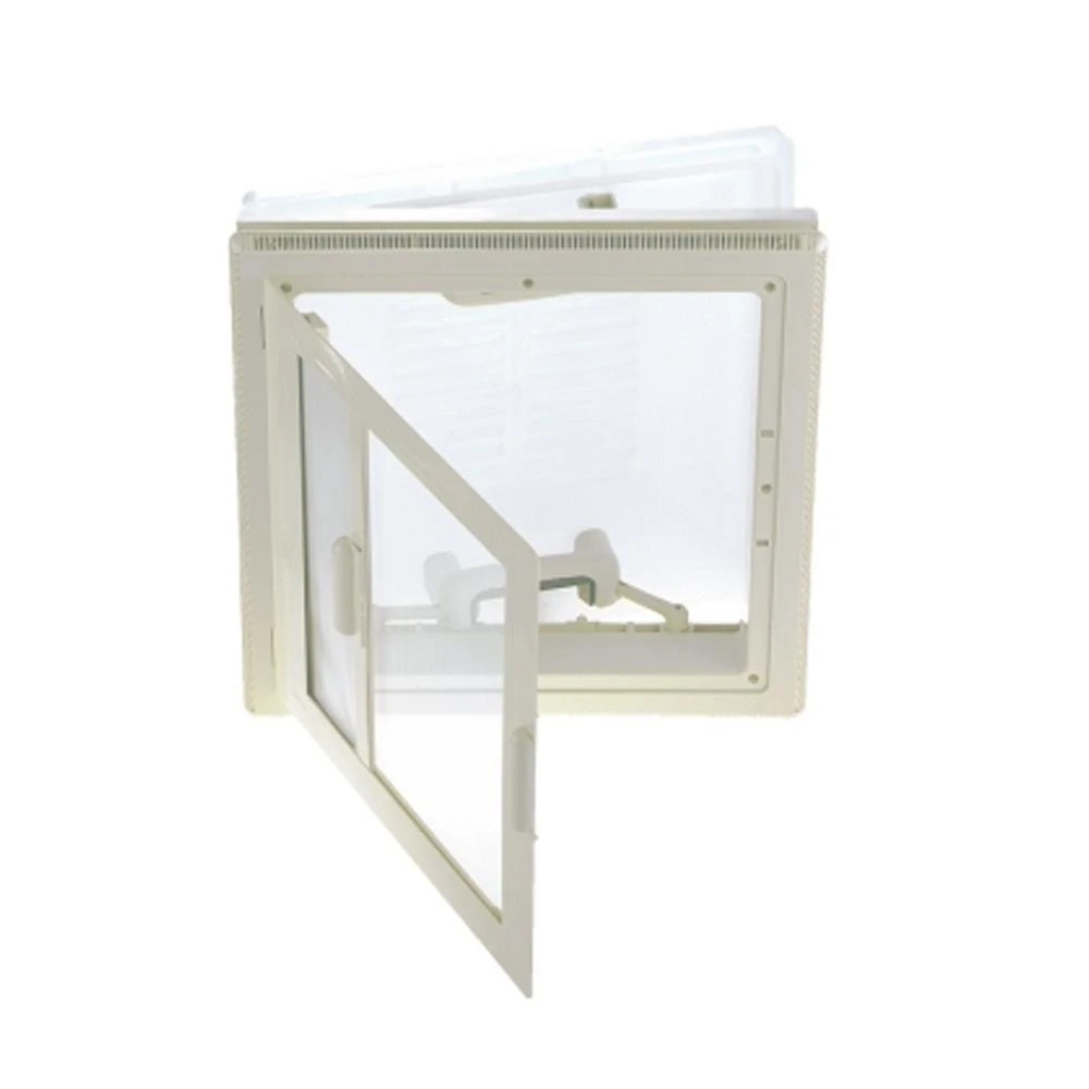 Dakluik met wit binnekader en extra grote kap om water in de caravan te voorkomen.