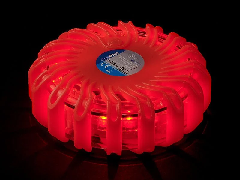 De ProPlus waarschuwingsschijf met 16 LED’s is een praktisch hulpmiddel voor gevaarlijke situaties, zoals bij een stilstaand voertuig op de snelweg.