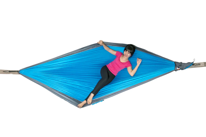 Vaak op reis en slaap je dan graag met je reismaat in een hangmat? Dan is deze dubbele reishangmat van parachutestof echt wat voor jullie. Hij is zeer lichtgewicht en hierdoor ideaal om mee te nemen op reis. De Ticket to the Moon Compact hangmat weegt namelijk maar 600 gram. Is hij dan niet sterk? Zeker wel, want hij heeft driedubbele stiksels. Het maximale draagvermogen van de hangmat is hierdoor dan ook 300 kilo. De hangmat is ademend en rekbaar. Hierdoor lig je comfortabel en heb je geen last van drukpunten. Houd er wel rekening mee dat er geen bevestigingsmateriaal wordt meegeleverd. De bevestigingskit is wel bij ons verkrijgbaar.