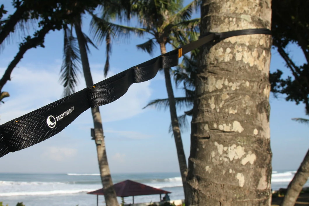 Hang je Ticket to the Moon hangmat makkelijk op met aandacht voor de boom. De meeste bevestigingstouwen beschadigen de boomschors. Deze bevestigingskit bestaat uit 2 touwen met beide een lengte van 2.5 meter. Deze beschermer is extra breed, zodat het touw niet snijdt. Je gooit het touw rondom een boom, legt er een knoop in en je bevestigt de hangmat aan de scheepsknopen in het uiteinde van het touw. Je hangmat is heel snel opgehangen. De kit wordt geleverd in een handig tasje waar de ophanginstructies op vermeld staan. De touwen zijn gemaakt van 100% nylon en kunnen de grootste hangmatten van Ticket to the Moon dragen.