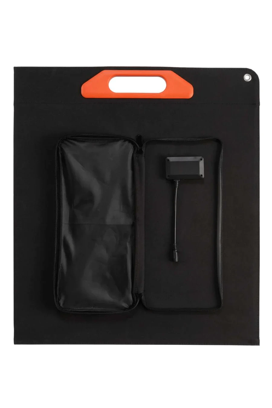 Het zonnepaneel is ook ontworpen voor avontuur, heeft een draagbaar design en een gewicht dat het gemakkelijk maakt om mee te nemen. De ingebouwde steunvoeten zorgen ervoor dat het zonnepaneel binnen enkele seconden klaar staat in de perfecte hoek om optimaal gebruik te maken van de zon. Het geïntegreerde tasje beschermt de bijgeleverde kabels en de powerbox tegen de elementen. Het zonnepaneel zelf is bovendien voorzien van een spatwaterdichte coating.